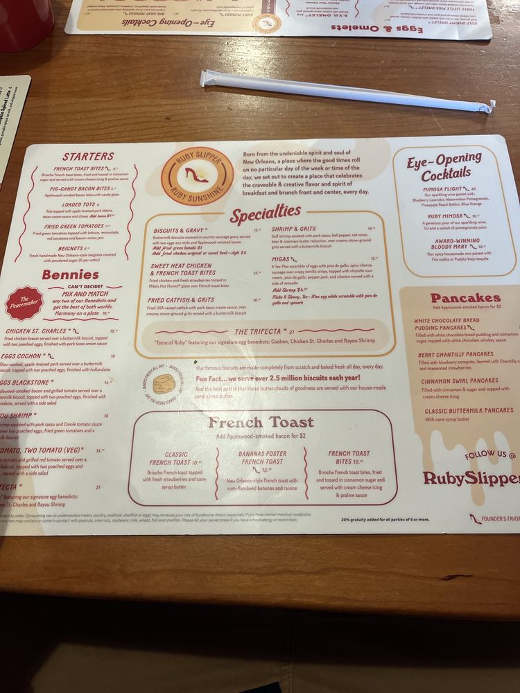 Welcome to Ruby Sunshine, the perfect spot for a delightful breakfast or brunch in Chattanooga, TN. This casual, trendy, and classy restaurant offers a variety of menu options, including many vegetarian choices. From the mouthwatering PigCandy Bacon Bites to the indulgent French Toast Bites, every dish is thoughtfully prepared with a unique twist. Don't miss out on the delicious Sweet Heat Chicken & French Toast Bites or the savory Loaded Tots with apple-braised pork debris. With its full bar, happy hour specials, and pool table, Ruby Sunshine is not just a dining experience but a place for socializing and enjoying great food. Their commitment to sustainability is evident through compostable containers and reusable tableware. So why wait? Treat yourself to a memorable meal at Ruby Sunshine today.