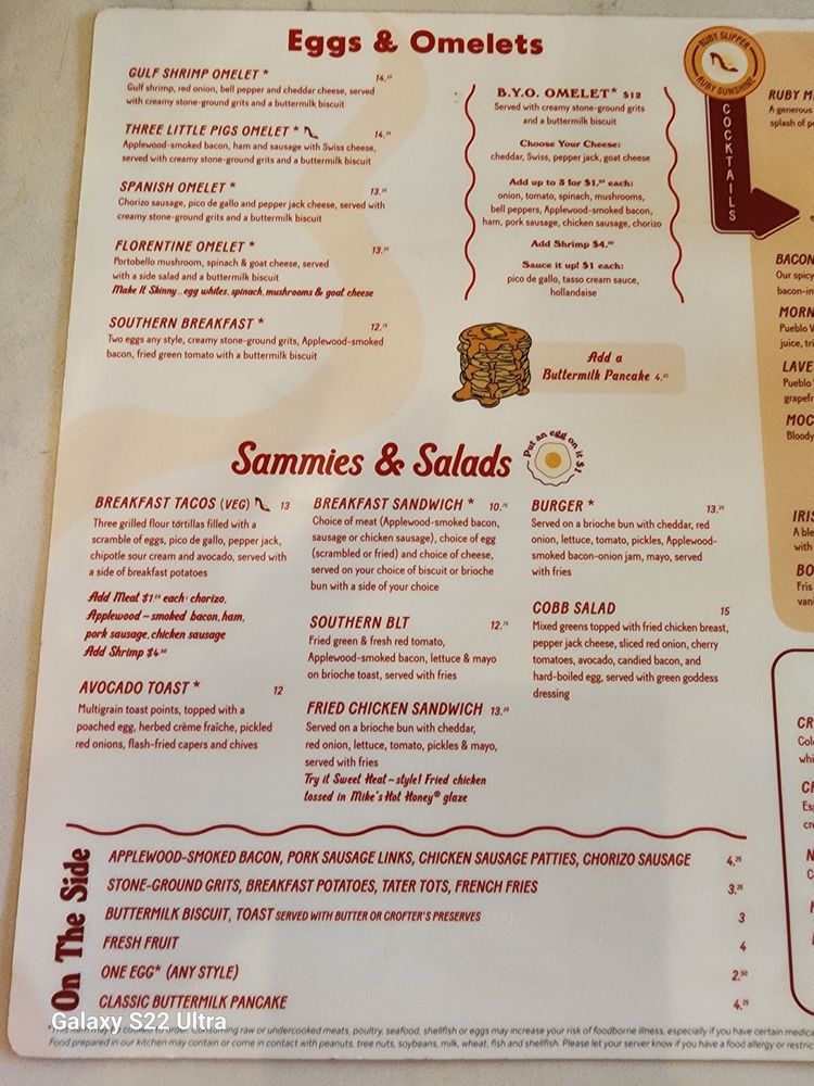 Chorizo sausage, pico de gallo and pepper jack cheese, served withgrits and a buttermilk biscuit
