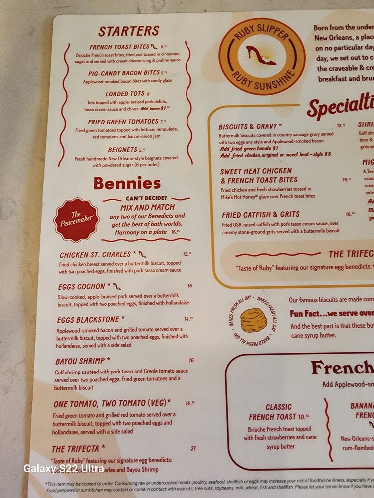Taste of Ruby featuring our signature egg benedicts: Cochon, Chicken St. Charles and Bayou Shrimp